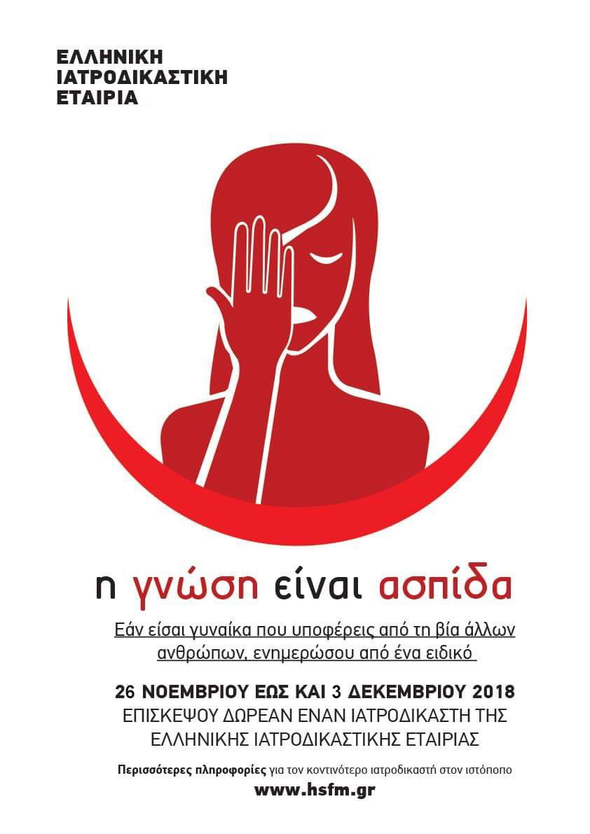 Από τις 26 Νοεμβρίου 2018 και για μία εβδομάδα – μέχρι και 3 Δεκεμβρίου 2018 οι συνεργαζόμενες δομές καθώς και οι ιατροδικαστές που συμμετέχουν στη δράση της ΕΙΕ θα προσφέρουν δωρεάν συμβουλευτικές υπηρεσίες και θα ενημερώνουν όσες γυναίκες έχουν βρεθεί αβοήθητες απέναντι σε βίαιες συμπεριφορές σχετικά με τις διαδικασίες που πρέπει να ακολουθήσουν σε περίπτωση που πέσουν ξανά θύμα κακοποίησης.