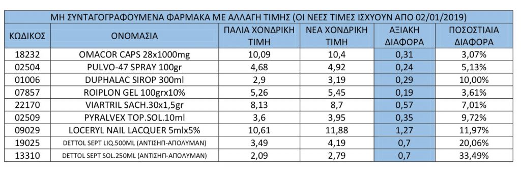Ωστόσο, σημειώνεται ότι οι περισσότερες αυξήσεις δεν ξεπερνούν το ένα ευρώ στις τιμές των μη συνταγογραφούμενων φαρμάκων.